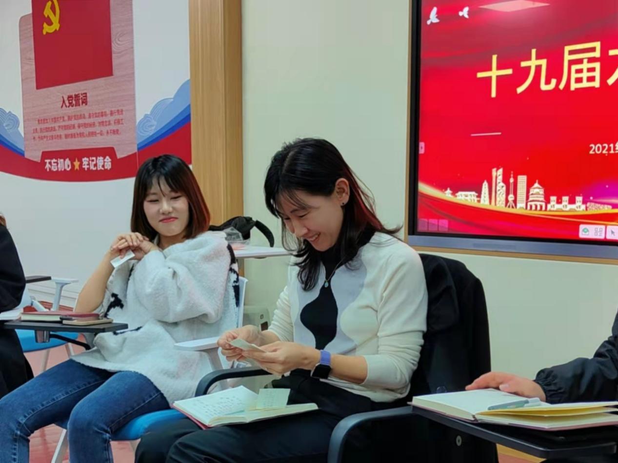 同时,为更好的开展今后党日活动和增进党员同志之间的了解,苗晶晶老师带领大家以轮流发言的形式通过了解大家对党日活动的建议以及各位同志的学习、工作和生活中的趣事来了解支部成员的思想动态。现场气氛热烈,同志们积极参与,纷纷发言分享自身的体会和感受,并且本次活动以匿名形式收集了各位同志写有期望或问题的纸条,苗晶晶老师仔细查看后指出作为新时代的青年,在思想方面勇于解放思想、与时俱进,明确党性修养永无止境,应利用好课余时间不断进取,不断探索,提高党性修养;在行动上,要将自己的目标和理想融入到党和人民的事业中来,以实际行动践行中国共产党人的初心使命。最后,苗晶晶老师对支部党员在科研上的嘱托,希望各位同志能多读文献,明确目标,将目标化整为零,一步一步完成,同时还要积极与导师沟通,增强内驱力,争取将科研任务做好