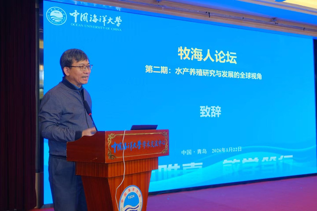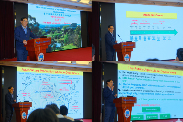 1月22日,色播 重点打造的学术品牌活动——“牧海人”论坛第二期在鱼山校区学术交流中心顺利举办。本期论坛由色播 与海水养殖教育部重点实验室联合主办,紧密围绕国家“蓝色粮仓”建设战略和水产养殖绿色高质量发展需求,致力于搭建高水平学术交流平台,弘扬“牧海人”精神,推动前沿研究与交叉融合,全面提升研究生创新能力和人才培养质量。本期论坛特邀费林德斯(Flinders)大学秦建光教授作专题学术报告。学院领导高勤峰、万敏和刘阳副院长出席活动,田相利教授主持交流讨论环节,学院教师及研究生120余人参加论坛。